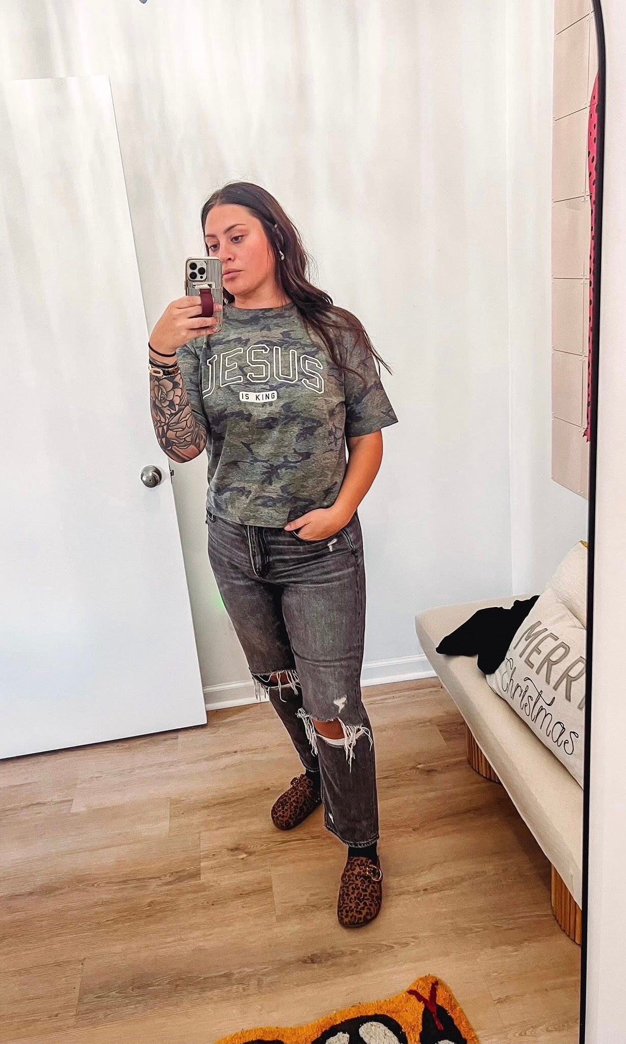 Camo Tee Jesus is king cropped tee