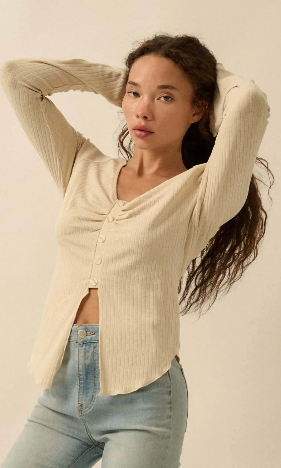 V Ribbed Knit Top